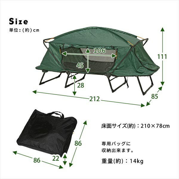 【4日20時からスーパーセール!】 ソロキャンプの必需品 一人用テント シングル コンパクト 軽量 一人用 テントコット 高床テント 簡単 4シーズン グリーン 緑 おしゃれ アウトドア用ベッド ソロテント ミニテント コンパクトテント 小さいテント